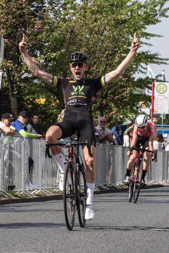 Domenic kam noch vor dem Hauptfeld ins Ziel und belegte den 11. Platz. Hier sollte sich der Veranstalter eventuell überlegen, ob er ähnlich wie beim Radrennen in Kiel-Mettenhof, eine getrennte Wertung der C-Klasse, bei gemeinsamen Start, ausschreibt. Mit seiner Leistung hätte Domenic auf jeden Fall eine aufstiegsrelevante Platzierung verdient gehabt, die ihm knapp verwehrt wurde. Vereinsmitglied Leon Rohde fuhr ebenfalls noch aus dem Hauptfeld heraus, verhalf seinem Teamkollegen Reinhardt zum Sieg und wurde selber noch 10. Der Profi vom Team Heizomat-Rad-Net nutzte das Rennen vor der Haustür, um nach seinem schweren Sturz Ende März bei der „Tour de Normandie“, wichtige Wettkampfkilometer zu sammeln. „Der Kurs hier in Buchholz ist anspruchsvoll und die Atmosphäre mit den vielen Zuschauern toll.“