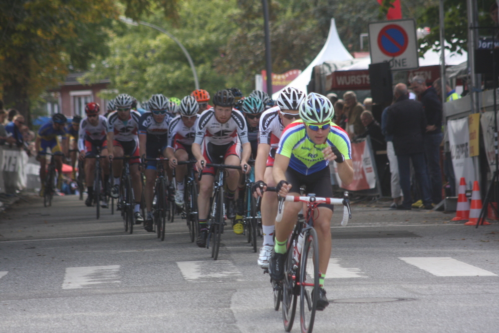Gegen 10.25 Uhr starten die lizenzierten Frauen gemeinsam mit der Master 4 Klasse über 35 Runden. Im Anschluss ca. 11.30 Uhr wird es nochmal laut und spektakulär. Mit über 60 km/h jagen die Rennfahrer hinter sogenannten Derny-Motorrädern über den Parcours. 40 Runden und somit 40 Kilometer nehmen am 12.10 Uhr die Master 2 und 3 unter ihre schmalen Rennräder. Hier ist mit Christian Hamburg, einem Mitglied des Veranstalters der RG Hamburg, ein ganz heißer Sieganwärter mit am Start.