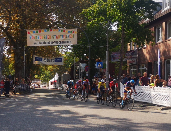 Am 4. September gingen in Volksdorf im Rahmen des Stadtteilfestes über 200 nationale und internationale FahrerInnen in den verschiedenen Klassen auf die nur einen Kilometer lange Rundstrecke durch den Ortskern an den Start und lieferten sich rasante Rennen.