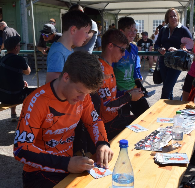 Niek und Justin hatten offensichtlich auch viel Spaß – geduldig verteilten sie Autogramme und testeten dann beim anschließenden freien Fahren noch einmal selbst den Track. Am folgenden Renntag schauten sie noch einmal vorbei, das Starten überließen sie den norddeutschen und dänischen Fahrern, die den zahlreichen Zuschauern spannende Rennen lieferten.