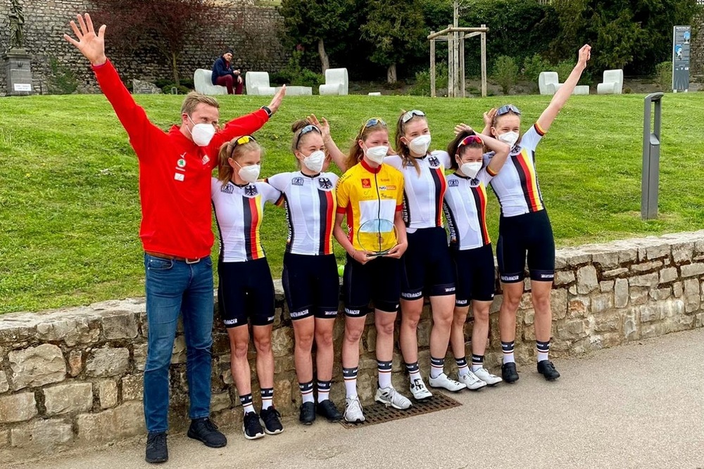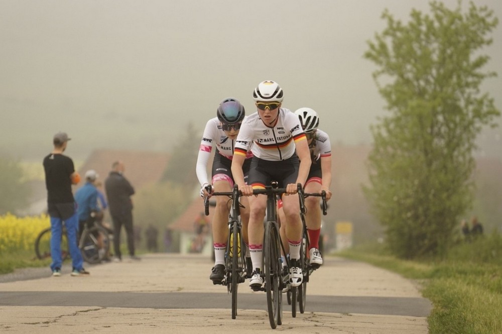 Am Wochenende vor Himmelfahrt war Marla Sigmund erneut mit der Juniorinnen Nationalmannschaft unterwegs. Beim 2. Nationscup der Saison, der Tour du Gévaudan Occitanie in Frankreich, überzeugte unsere Rennsportlerin erneut mit toller Form und mannschaftsdienlicher Fahrweise. So hatte Marla einen großen Anteil am Gesamtsieg Ihrer Nationalmannschaftskollegin Linda Riedmann, die das gelbe Trikot über 2 Tage verteidigte. Beide Mädchen sind auch Teamkolleginnen der Bundesligamannschaft Mangerseder, welche am Donnerstag im bayrischen Karbach im Juniorinnen-Rennen dominierten und souverän die Plätze 1 und 2 gewannen.