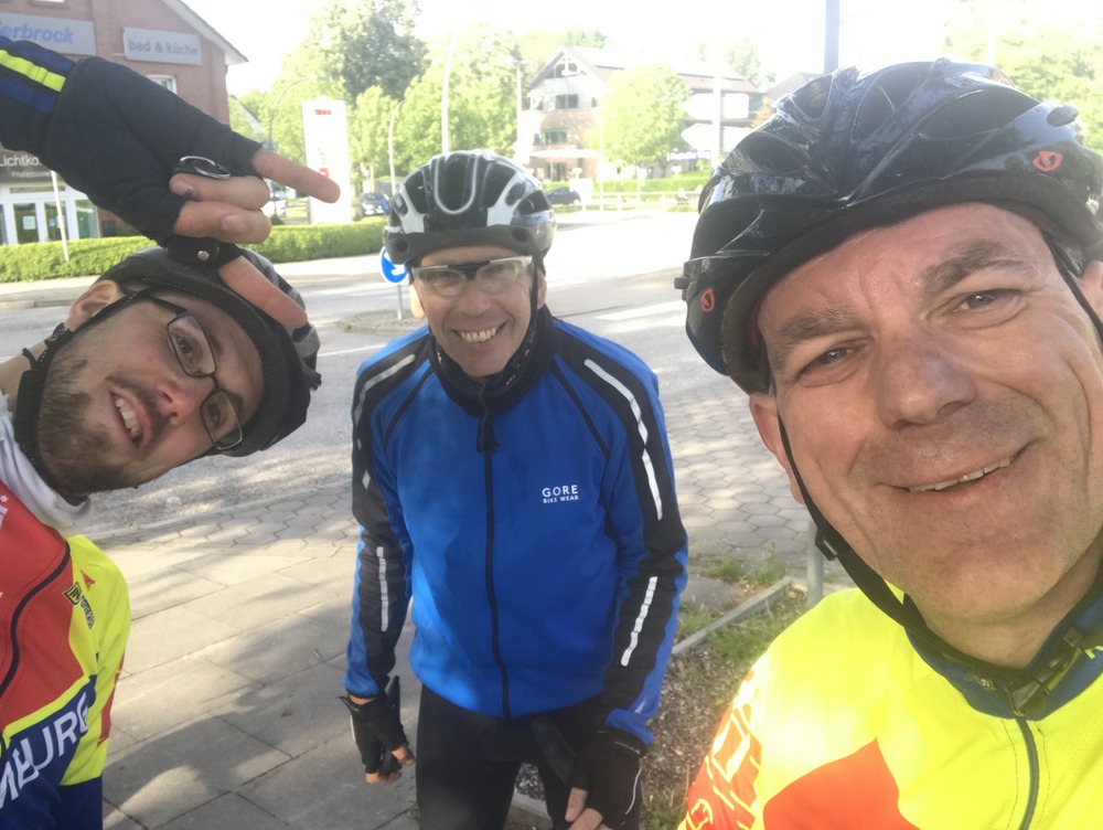 Am Kreisel hatten wir unsere 300km abgeritten. Alle drei waren wir glücklich und zufrieden. Sofort wurde beschlossen, dass wir die Runde noch einmal zu fünft, wie geplant, fahren wollen. Da es das Ziel von allen waren, werden wir die Strecke noch einmal gemeinsam erleben. Das steht fest. Wenn die Köpfe des Rennrad-Team Duvenstedt der RG Hamburg sich so etwas vornehmen, dann wird das auch was.