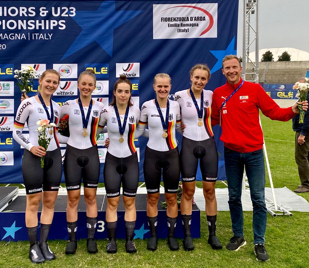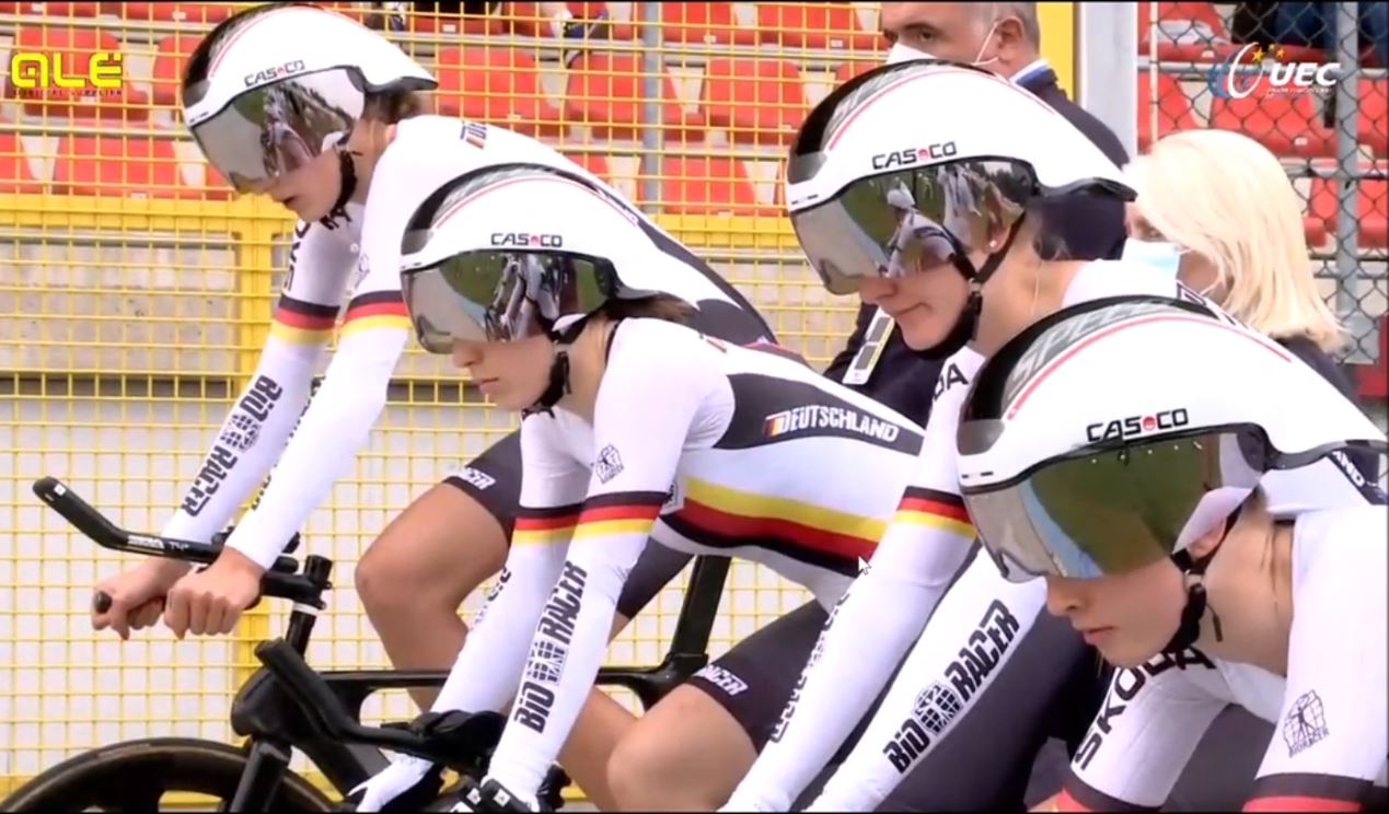 Am vergangen Mittwoch startete sie dann in der Einerverfolgung bei der Europameisterschaft und konnte eine guten 6. Platz erreichen. Am vergangenen Donnerstag startete sie dann in der Mannschaftsverfolgung für Deutschland. In der Qualifikation schaffte die Mannschaft Platz 3 und erreichte damit das kleine Finale um Platz 3 und 4 am Nachmittag. Dort ging es gegen Polen, die in der Qualifikation nur 2 tausendstel Sekunden langsamer waren. Die Deutsche Mannschaft konnte sich allerdings gegenüber der Qualifikation deutlich steigern und holte sich verdient die Bronzemedaille.