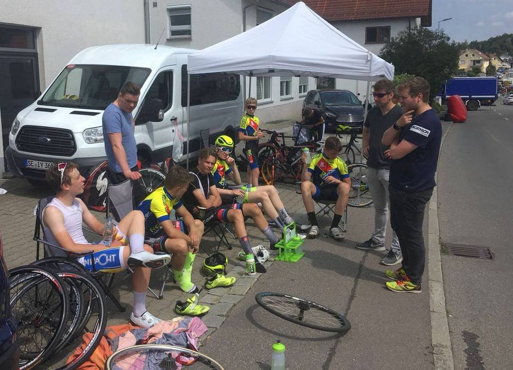 Bereits beim Sichtungsrennen in Karbach unterstrich Daniel Prien seine derzeit bestechende Form mit einem tollen 5. Platz aus einer Spitzengruppe heraus. Unser Spezialist für die anspruchsvollen Rennen, wollte es auch am Wochenende, beim Meisterschaftsrennen in Reinstetten (WTB) nicht auf das Glück des richtigen Hinterrades ankommen lassen. Und setzte statt auf Massensprint, auf Angriff. Vor den Augen des Bundestrainers wagte er zur Rennhälfte der insgesamt 72 Kilometer seinen Vorstoß. Gemeinsam mit einem Fahrer aus NRW fuhr das Duo einen Vorsprung von knapp 1.30 min heraus. Vereinstrainer Leonard Diekmann und Alex Böker, Ref. Leistungssport im LV feuerten an und fieberten mit. Leider verlor Daniel seinen Mitstreiter und kämpfte vor den Augen des Bundestrainers bravourös als Solist weiter. Wenige Meter fehlten zur Sensation. An der 3000 Meter Marke war die Flucht dann leider vorbei. Auf der ansteigenden Zielgerade konnte dann aber LV-Kollege und Freund Jasper Pahlke (Harvestehuder RV) als 4. überzeugen. Auch Benet Metz als Jungjahrgang ersprintete sich mit Platz Platz 17 eine sehr gutes Resultat und wertvolle Sichtungs-Ranglistenpunkte. Noah Böker (49), Hannes Anders (71) und Cedric Stein, Noa Metzler (81) kamen ebenfalls mit dem Hauptfeld ins Ziel.