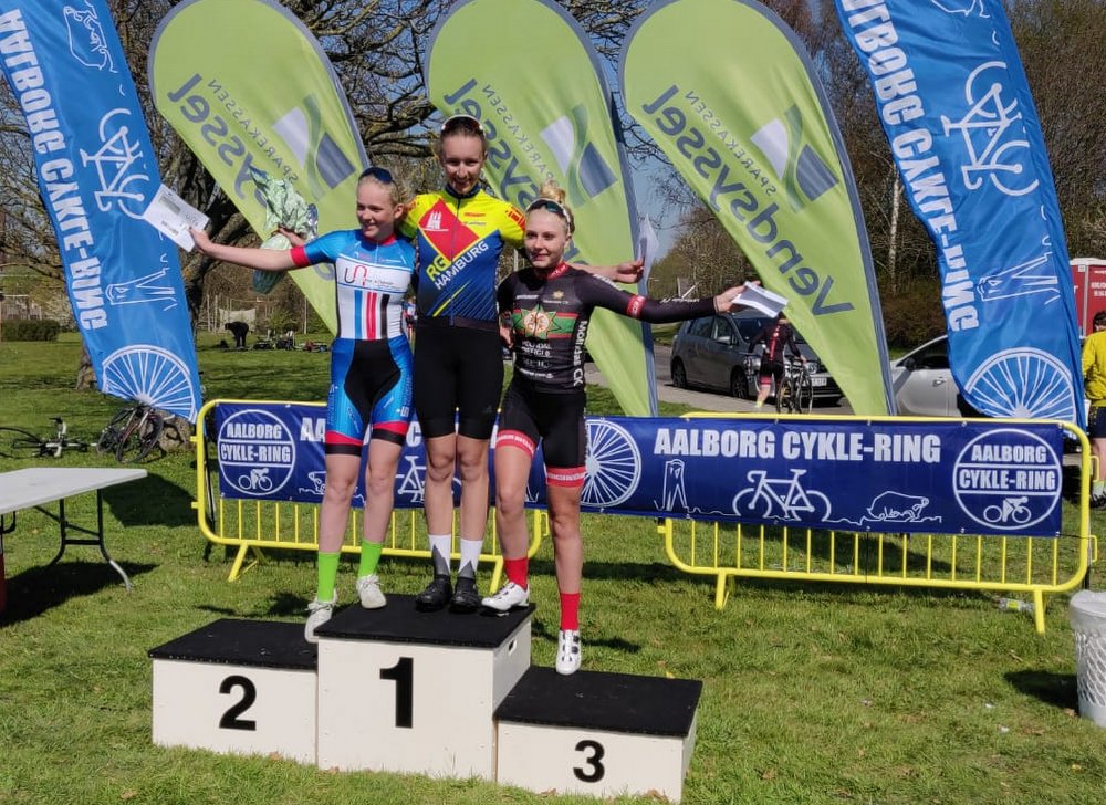 Marla: Die weibliche Jugend U17 startete an allen 3 Tagen mit der männlichen U15. Wir waren knapp 10 Mädchen und das Tempo im Feld der Jungs war stets zügig. An den ersten beiden Tagen kam es zum Sprint. Hier wurde ich jeweils knapp geschlagen Zweite, hinter einer Schwedin. So fehlten mir am letzten Tag zwei Punkte zum gelben Trikot. Für den ersten Platz hätte ich 50 Punkte bekommen, für den zweiten 49 usw. Also musste ich gewinnen und gleichzeitig durfte die Führende, Alma Johansson (Schweden) nicht Zweite werden. Nach dem Start ging es sofort berg hoch. Ich habe versucht direkt das richtige Hinterrad zu bekommen. Zum Glück, denn direkt nach der Neutralisation bildete sich eine etwa 10 köpfige Spitzengruppe. Ich bin also vom Start bis zum Ziel vorne gefahren und wusste, dass Alma zwar im Sprint besser war, sich aber sonst eher weiter hinten aufhält. Die mit Trainer Leo besprochene Taktik, ihr das Rennen zur Hölle zu machen indem ich vorne fahre ist sehr gut aufgegangen. Es war sehr windig und Alma wurde dann sogar aus dem Feld noch abgehängt. Mit der Dänin Julie Uhre ist zu meinem Glück ein weiteres Mädchen im Feld geblieben. Am Ende habe ich dann mit einem großen Abstand über 1 Minute gewonnen und in der Gesamtwertung auch die Führung sowie das gelbe Trikot übernommen. Insgesamt ein sehr gelungenes Wochenende mit einem super Ergebnis, in einem super Team. Ich freue mich auf die nächsten Sichtungsrennen! LG Marla