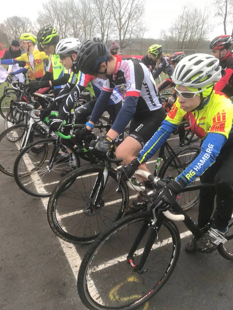 Wer sein Rad liebt, der schiebt. Bereits am Vortag, als die meisten der LVM Teilnehmer den Crossprofis beim Weltcup-Rennen zu schauten, ahnten sie, dass sich auch am Sonntag diese Redewendung bewahrheitet. Durch den Dauerregen der Vortage extrem aufgeweicht und schlammig, entpuppte sich der Kurs in Zeven für Profis und Lizenzfahrer zur echten Herausforderung. Teilnehmer berichteten von einem Laufanteil von 50 Prozent plus. Frederik Rassmann durfte auf Grund seiner hervorragenden Leistung beim Weltcup in Dänemark, auch in Zeven im Trikot der Nationalmannschaft an den Start gehen. Auch wenn der Kurs ihm diesmal nicht ganz so lag, Freddy kämpfte bis zum umfallen und fuhr als 41. über den Zielstrich.