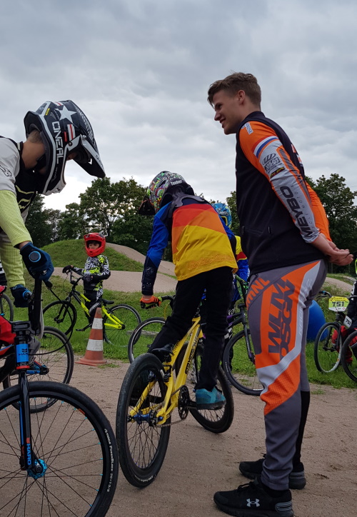 Nachdem die beiden BMX Sportprofis am Morgen Ihre eigene Fitness im Alsterfit Hamburg (Dank an die Filiale Rahlstedt) trainierten, hier aber nur auf die Mütter der in der Schule sitzenden Fahrer trafen, durften die Kids und Jugendlichen am BMX Race Track sich auf das Training mit den beiden sympathisch-fröhlichen BMX Profis freuen.