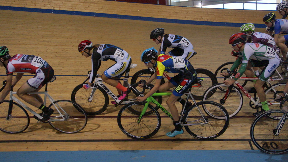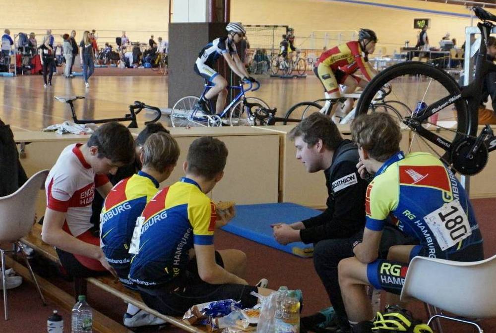 Mit Benet Metz und Luca Rohde haben in diesem Jahr zwei weitere Nachwuchsfahrer der RG Hamburg, durch herausragende Leistungen auf der Bahn, den Sprung in die Nationalmannschaft geschafft. Unsere beiden amtierenden Deutschen Meister im Omnium profitierten bei Ihren souveränen Titelgewinnen in Köln, sicher auch von den gesammelten Erfahrungen der Winterbahn-Wettkämpfe in Frankfurt/Oder. Und so war es nur selbstverständlich, fast schon traditionell, dass auch in diesem Jahr einige Nachwuchssportler, Betreuer sowie Trainer Leonard Diekmann zur Winterbahn fuhren. In Frankfurt/O. geht’s schließlich nicht um die Wurst, sondern um leckere Schokolade. Die bekommt nämlich der jeweilige Sieger als Belohnung. „Abgesehen davon, wird hier zum Teil die Grundlage für die nächste Saison gelegt sowie eine erste Standortbestimmung im Vergleich zu den anderen Radsportlern vollzogen“, so der Trainer. Dazu kommt natürlich der Spaß in der Gruppe und die gemeinsamen Erlebnisse.